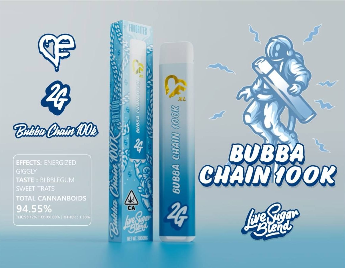 The Favorites Disposable BubbaChain 100K Live Sugar Blend is a premium, long-lasting disposable vape designed for users who demand reliability, smooth flavor, and extended performance. With its advanced live sugar and liquid diamond formulation, high-capacity design, and dependable hardware, it delivers a refined experience that stands above standard disposable vapes.