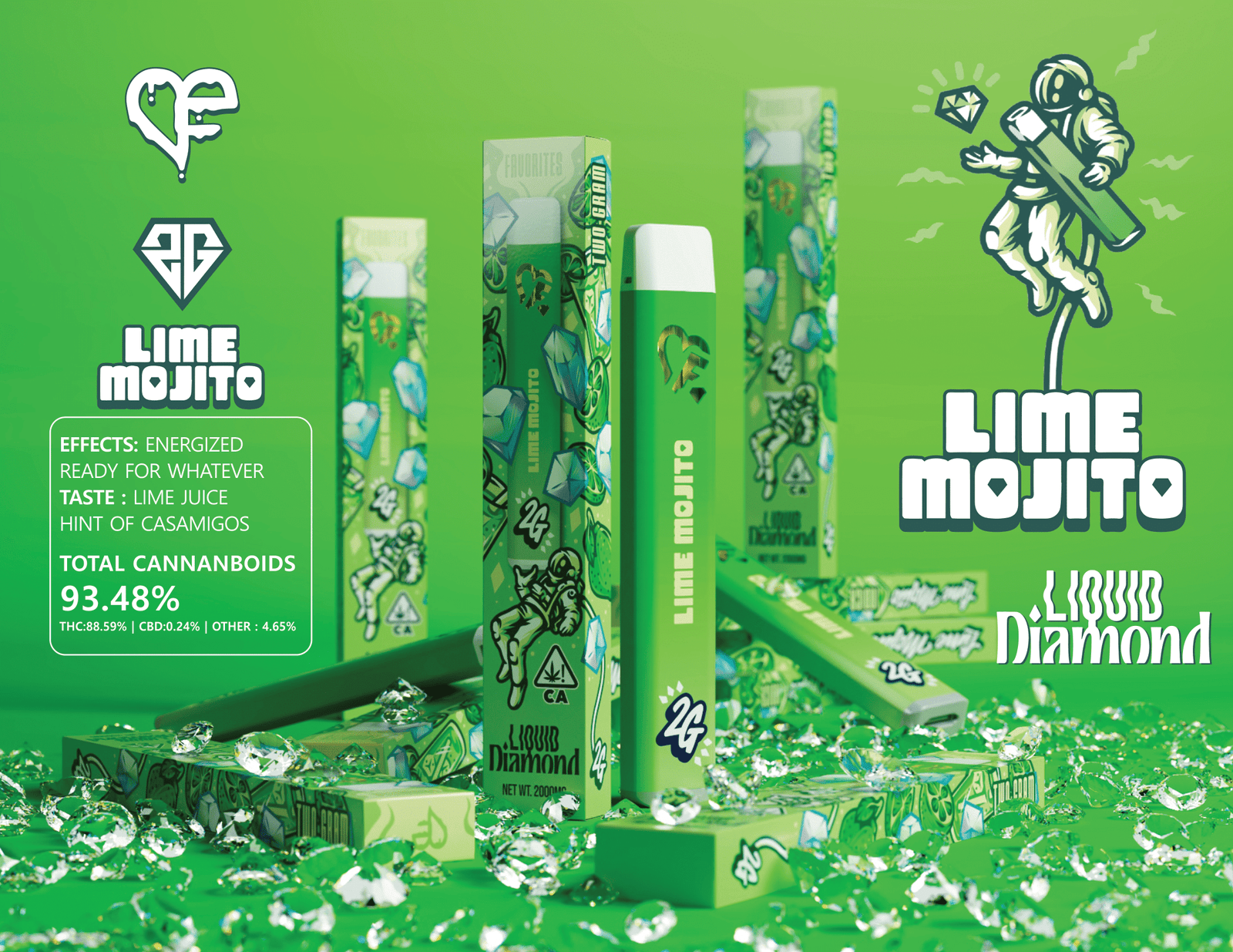 The Lime Mojito Liquid Diamond disposable is made using refined Liquid Diamond concentrate, a next-level extraction process designed to preserve cannabinoid purity and enhance flavor clarity. Unlike standard distillate disposables, Liquid Diamond delivers smoother vapor, reduced harshness, and a more refined taste profile.